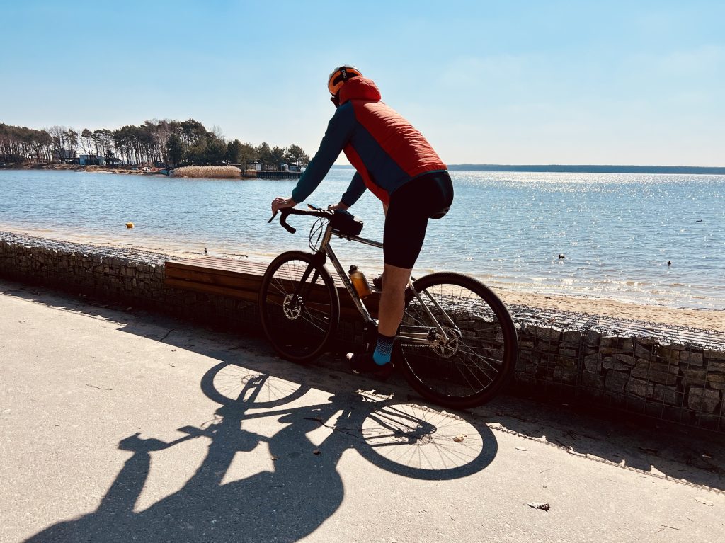 Samo Jezioro Turawskie kojarzy się głównie z letnim sezonem i plażowiczami, ale teraz, poza sezonem, można tu naprawdę odpocząć, chociaż już widać, że przy pierwszych podrygach wiosny ludzi znacznie przybyło. Objazd wokół jeziora leśnymi ścieżkami to dobry wybór dla tych, którzy lubią naturalny teren zamiast asfaltowych dróg i tutaj ludzi było już znacznie mniej. Trasa jest miejscami piaszczysta, co dodaje nieco wyzwania, ale krajobrazy wynagradzają wysiłek. Kilka krótkich postojów przy wodzie i jedziemy dalej.