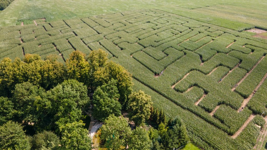 Labirynt zajmuje aż 4,8 ha, a trasy mają razem ponad 4 km długości! Wysokie łodygi kukurydzy skutecznie odcinają Was od świata zewnętrznego – więc jeśli macie ochotę odłożyć telefony i naprawdę się pobawić, to tu jest ku temu idealna okazja.